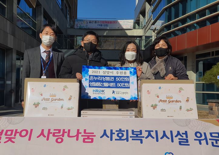 ¼³ ¸íÀýÀ» ¸ÂÀÌÇØ ¼Ò¿ÜµÈ ÀÌ¿ôÀ» ã¾Æ ¿ÂÁ¤ÀÇ ¼Õ±æÀ» ÀüÇÏ°í ³ª´®ÀÇ ±â»ÝÀ» ½ÇõÇϰíÀÚ "21.2.2ÀÏ ¿ï»êÀå¾ÖÀÎÁ¾ÇÕº¹Áö°ü(¿ï»ê Áß±¸)°ú ÇÔ¿ù³ëÀκ¹Áö°ü(¿ï»ê Áß±¸)À» ¹æ¹®ÇÏ¿´°í, 3ÀÏ¿¡´Â µµ¼Öõ³ëÀοä¾ç¿ø(¿ï»ê ¿ïÁÖ±º)À» ¹æ¹®Çß½À´Ï´Ù. ÃÑ 3°÷ÀÇ »çȸº¹Áö½Ã¼³¿¡ 400¸¸¿ø »ó´çÀÇ ¿Â´©¸®»óǰ±Ç ¹× »ýÇÊǰ µî ÈÄ¿ø±Ý°ú ¹°Ç°À» Àü´ÞÇß½À´Ï´Ù.